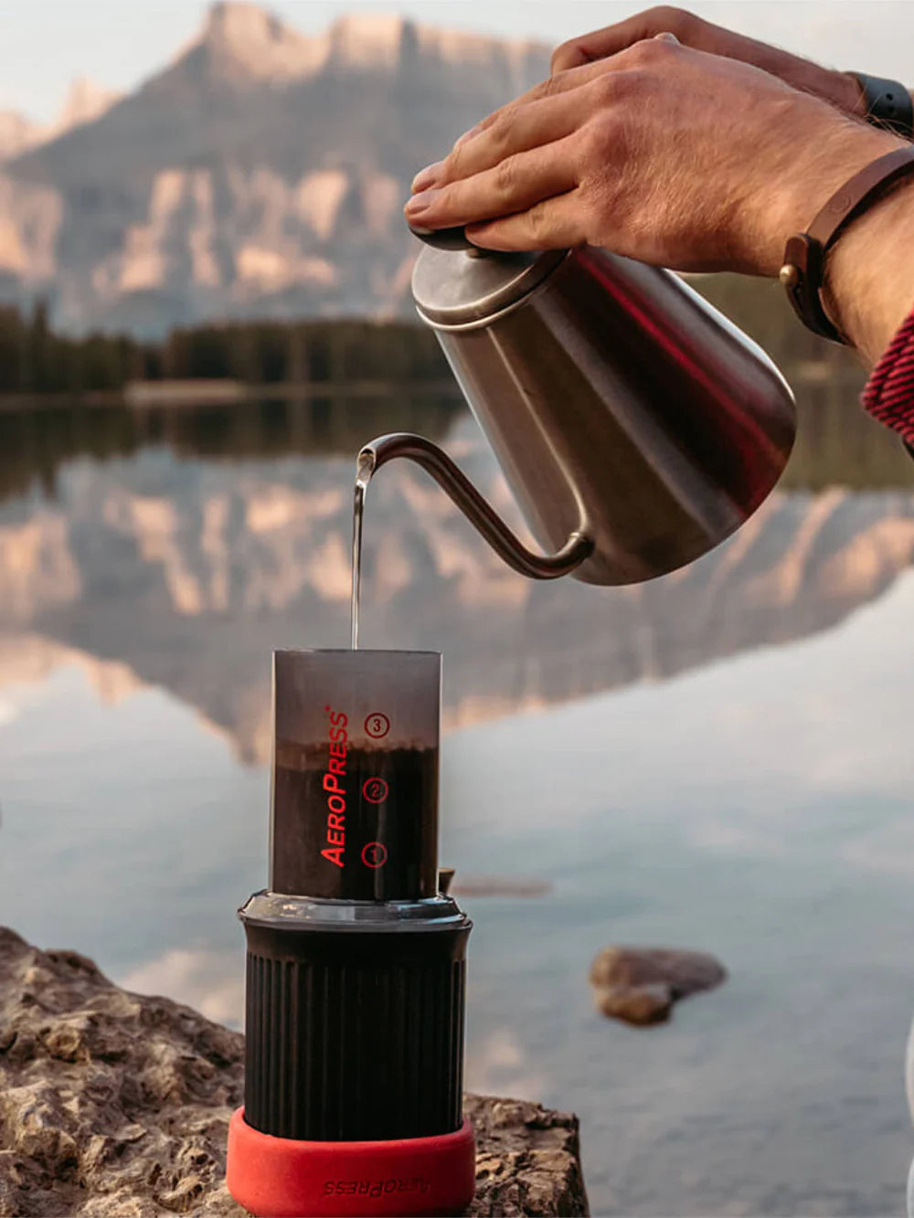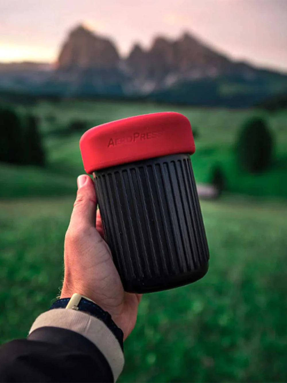 In the same spirit as the AeroPress Original, the AeroPress Go is all about ease on the go. With the AeroPress Go, you get all of the same brewing capabilities as the AeroPress Original with the convenience of being able to stow the Go in a perfectly-sized and handy travel mug. The AeroPress Go is so compact, easy to use, and consistently brews delicious tasting coffee, that you'll want to take it everywhere! Whether you're climbing a mountain, relaxing in your hotel room, or out on the water, the AeroPress Go will be your new favourite coffee companion.