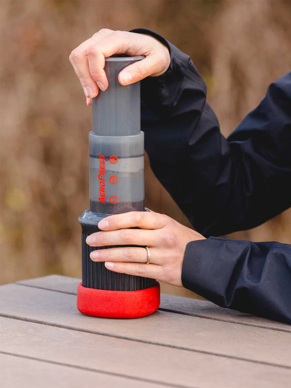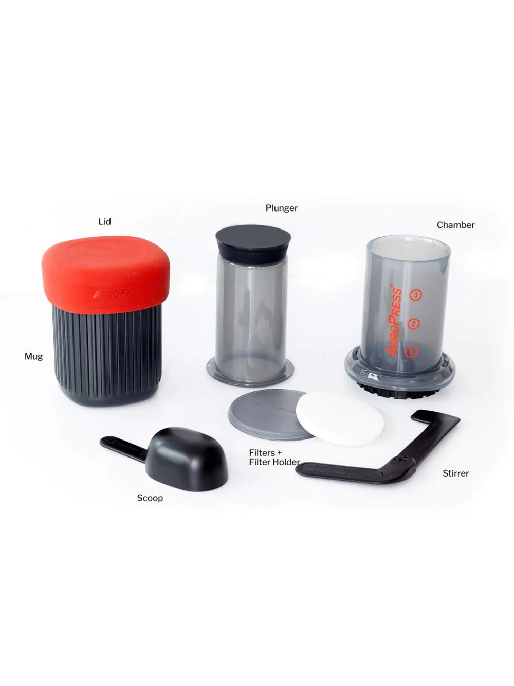 In the same spirit as the original AeroPress, the AeroPress Go is all about ease on the go. With the AeroPress Go, you get all of the same brewing capabilities as the AeroPress with the convenience of being able to stow the Go in a perfectly sized and handy travel mug.